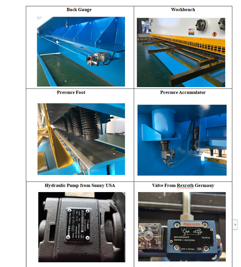 4. Bevegelig bane av bladbjelkene skråner fremover til støtteflaten til bunnbladet, slik at du kan få en fin skjæroverflate. Jekkeskruer på toppbladet gir en finjustering for å minimere "fille" eller "grading" på den klippede kanten av materialet. Hold-down-enheten tar i bruk sommerfuglfjærene. Det er sklisikre hælblokker på holde-ned-enheten til hold-down-platen. Trykket er større, men det skader ikke plateoverflaten.